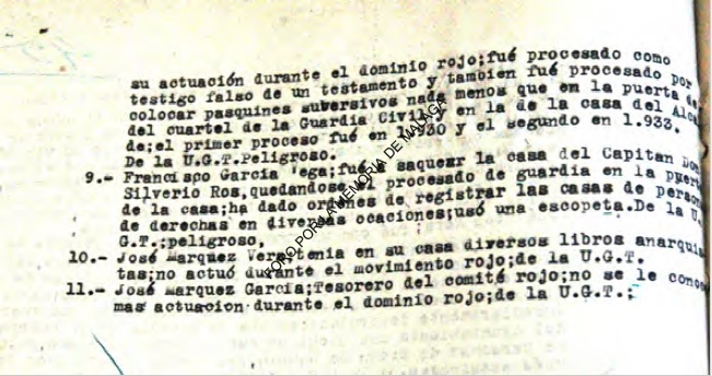 10.- José Marquez Vera; tenia en su casa diversos libros anarquistas; no actuó durante el movimiento rojo; de la UGT.
