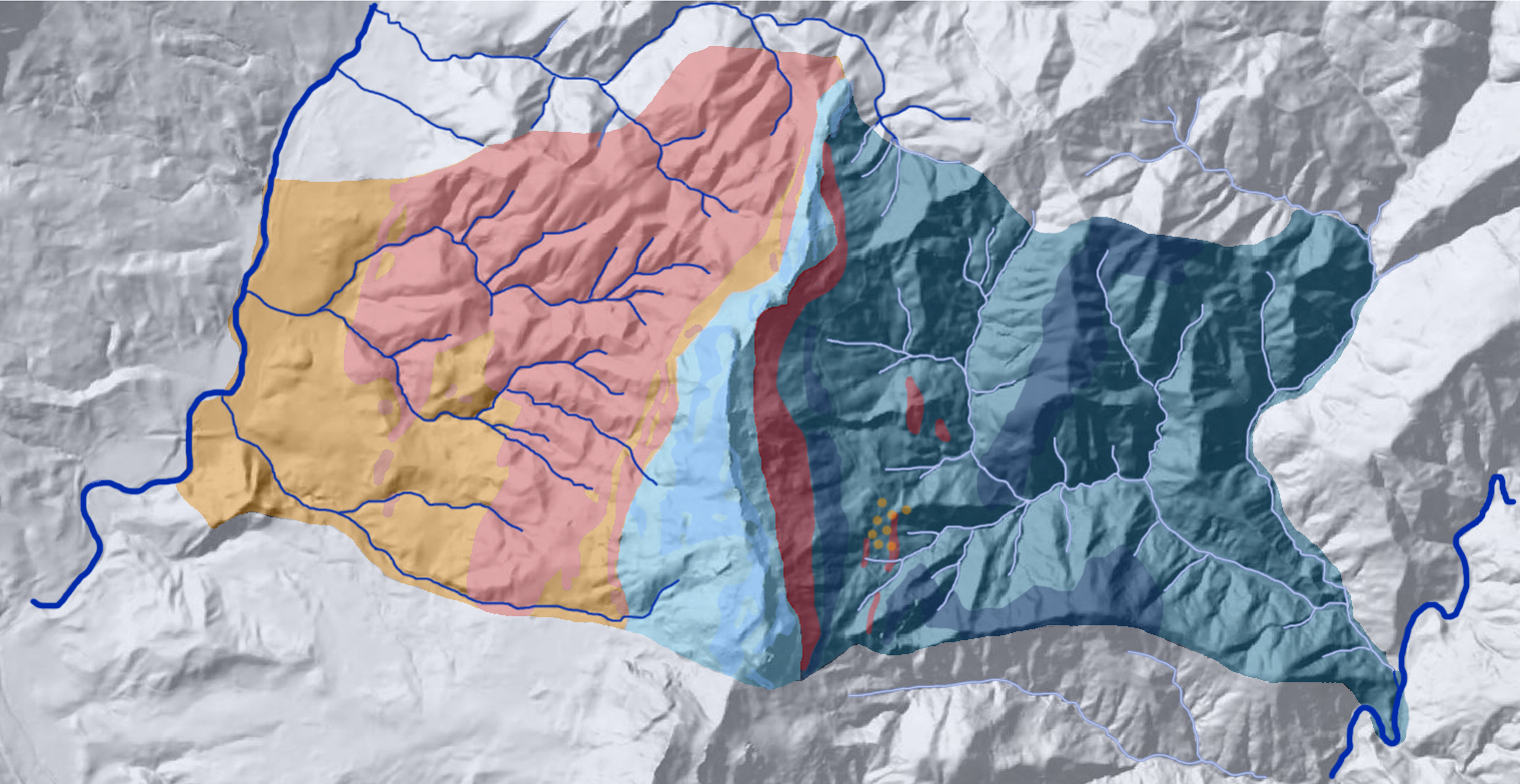 En esta figura las rocas afloran unas al lado de otras, como sin conocerse, pero es de interés saber si, además de ser vecinas, unas están encima o debajo de otras, dato que puede indicar su edad relativa.