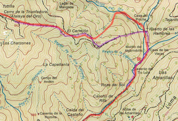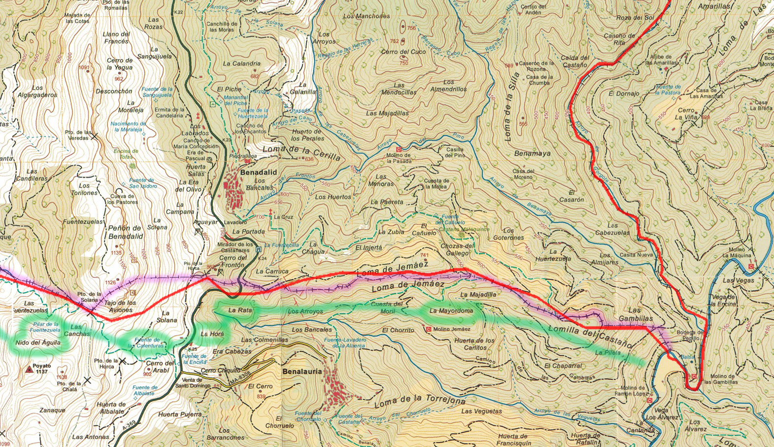 Me causa más asombro la diferencia entre el límite reconocido por el IGN (rojo) y el propuesto en el mapa del CEDER (violeta), según el cual el Tajo de los Aviones, es decir, el Peñón de Benadalid ¡pertenece a Benalauría y no al municipio epónimo! Tras la pérdida de las Alcobainas y de Siete Pilas, solo faltaba esto. Ni siquiera tenemos ya la fuente de las Calenturas para aliviar el sofoco que nos causa este último saqueo…
